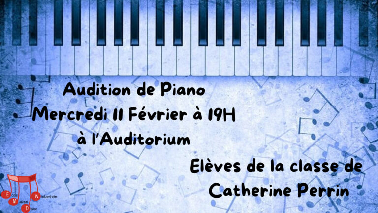 Catherine Perrin, professeur de piano à l'EMDW, vous propose l'audition d'élèves de sa classe de piano, pour jeunes et adultes. Une belle occasion pour eux de se présenter sur scène pour une belle prestation musicale. Venez les encourager.